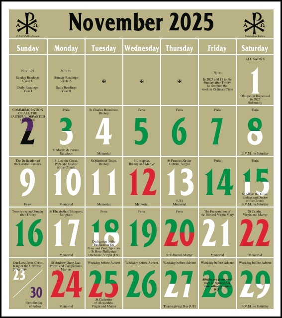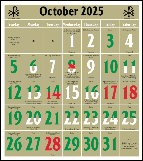 Orders for the 2026 calendar are now being accepted.Ordering info is after the preview calendar below.The calendar sets forth the observances of the Ordinariate of the Chair of St Peter as given in the official Ordo Book approved by the Bishop. The ordering deadline is November 2nd. Calendars will ship in November and December to arrive by Advent II. All payments received after subtracting printing and mailing costs are donated to the Bishop's Appeal. The 2025 Ordo Calendar project raised $991.13 for